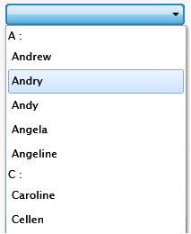 <Intersoft:UXItemsControl ItemsSource="{Binding Items}" DisplayMemberPath="Name"> <Intersoft:UXItemsControl.GroupStyle> <Intersoft:GroupStyle HeaderStringFormat="{}Category : {0} "/> </Intersoft:UXItemsControl.GroupStyle> </Intersoft:UXItemsControl> |