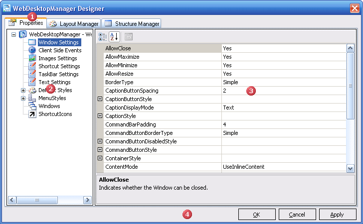 | Acts as a container which will display the properties of the currently selected Node in the TreeView | |