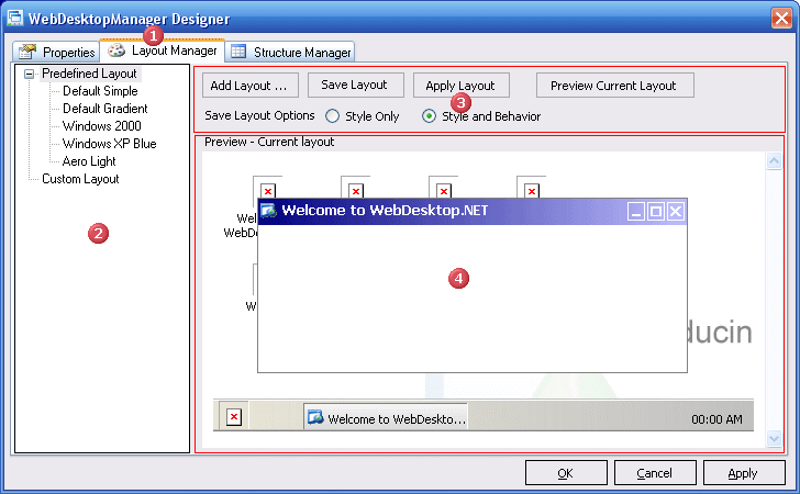 The Layout Manager is the second major feature available in Component Editor. This feature allows predefined or custom layouts be applied into the currently edited component.