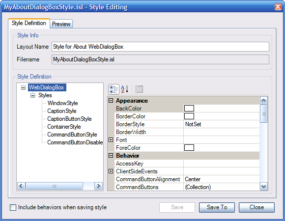 In this case, enter a new layout filename 'MyAboutDialogBoxStyle.isl' and click Save. Then click the Edit Style button to start editing the style. A dialog box will show up and informs that the layout file is not found and therefore we are going to create a new layout. Click OK to proceed.