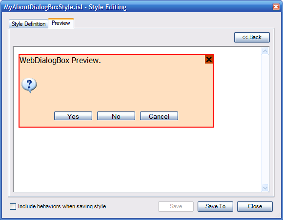 After previewing the style click the Close button. Now you can start deploying the theme project to your Web application. The next tutorial (Deploying Theme Project) will show you how to deploy a theme to your Web application.