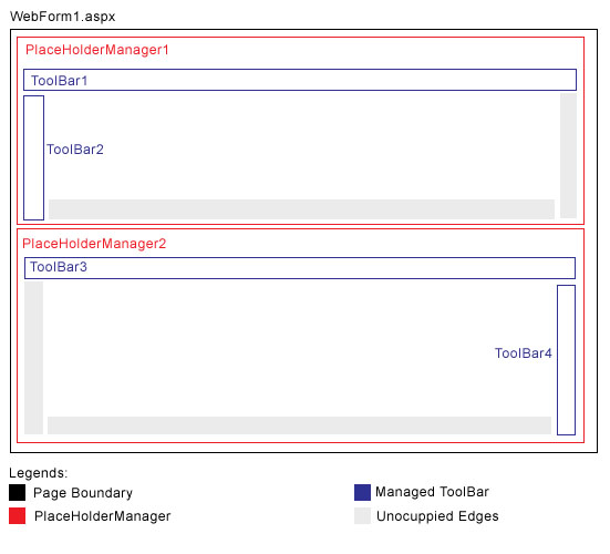 - ToolBar1 or ToolBar2 can be moved to the available bottom or right edge of PlaceHolderManager1 zone.