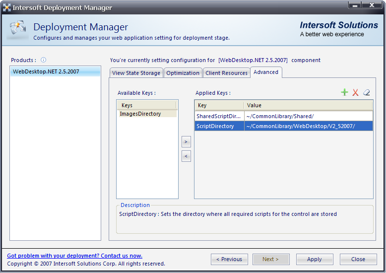 Key Value ScriptDirectory ~/CommonLibrary/WebDesktop/V2_5_2007/ SharedScriptDirectory ~/CommonLibrary/Shared/ ImagesDirectory ~/CommonLibrary/Images/WebDesktop/