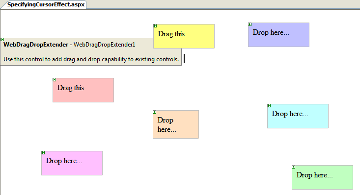 - Drag WebDragDropExtender instance from ToolBar to the page.