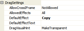 - Search for DragSettings >> DefaultEffect. Set the cursor effect for all DragControls (for example : Copy)