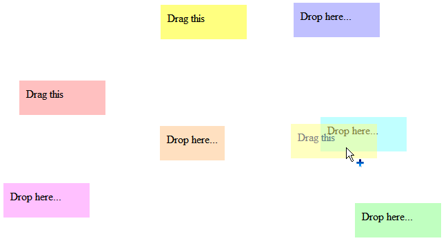 - Run the project. You will notice the cursor effect when trying to drag the dragable panel and drop it to the dropable panel.
