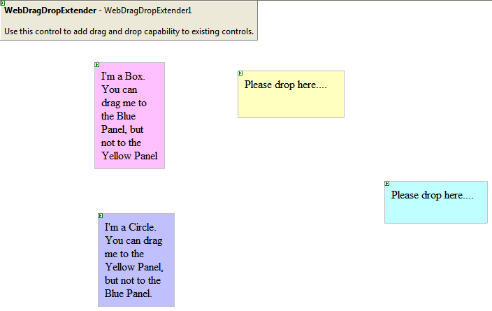 - Drag WebDragDropExtender instance from ToolBar to WebForm.