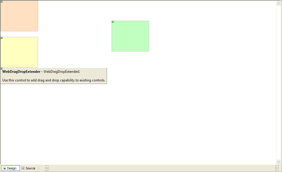 - Drag WebDragDropExtender instance from ToolBar to WebForm.