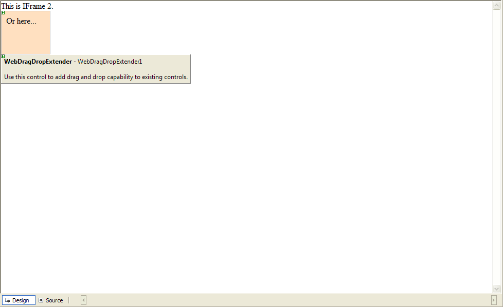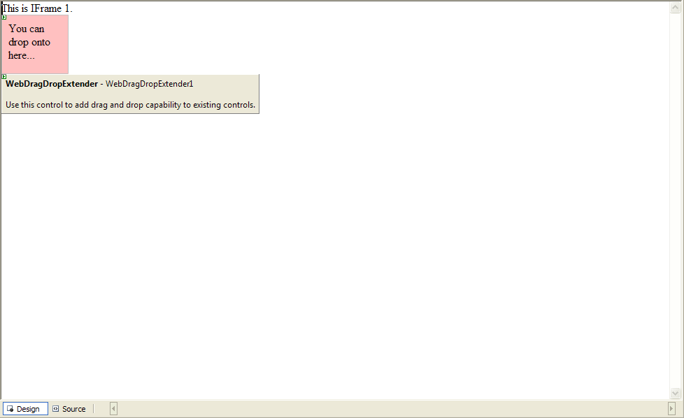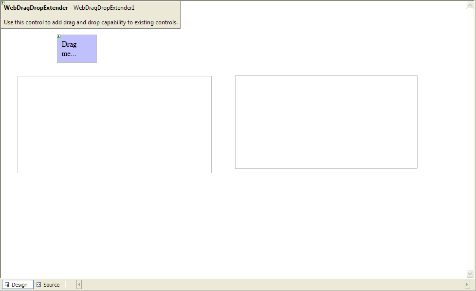 - Drag WebDragDropExtender instance from ToolBar to WebForm.