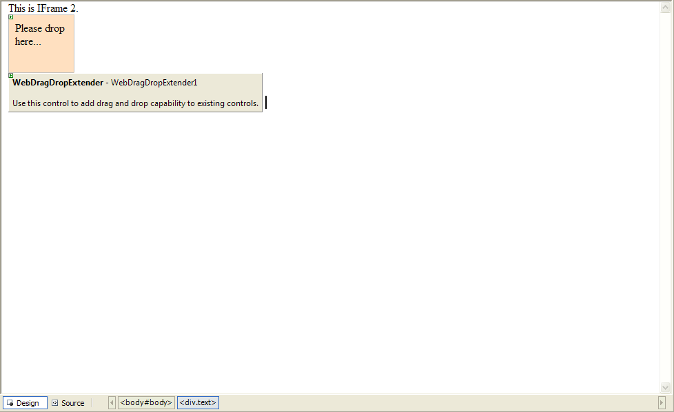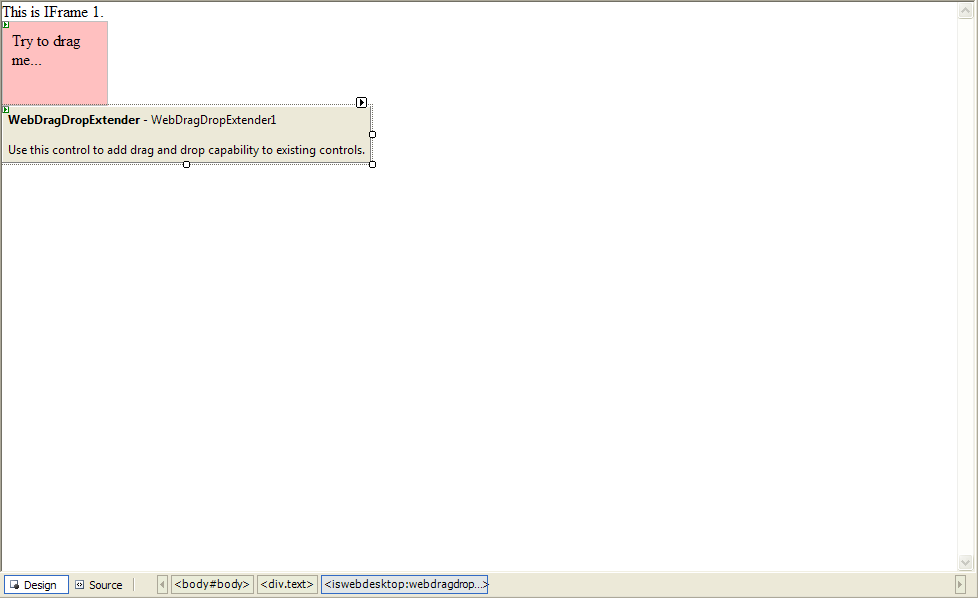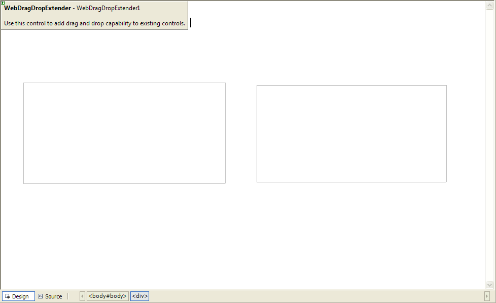 - Drag WebDragDropExtender instance from ToolBar to WebForm.