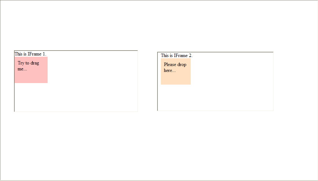 - Run and compile the project. Try to drag the panel in the first IFrame to the panel in second IFrame.