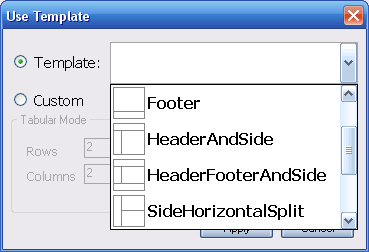 The Default Selected Radio Button is Template where a ComboBox with Image is provided so user can select from a predefined templates. Those are the templates commonly used when designing an application. User can select from those predefined templates and then either directly use the template or perform modification to the template.