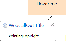 - When you set PointingPosition to PointingTopRight, WebCallOut will appear on the TopRight of control specified in TargetControlId.