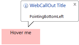 - When you set PointingPosition to PointingBottomLeft, WebCallOut will appear on the BottomLeft of control specified in TargetControlId.