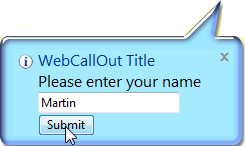 - Set TargetControlId to the control you want to use, such as Label1. The WebCallOut will look like following: