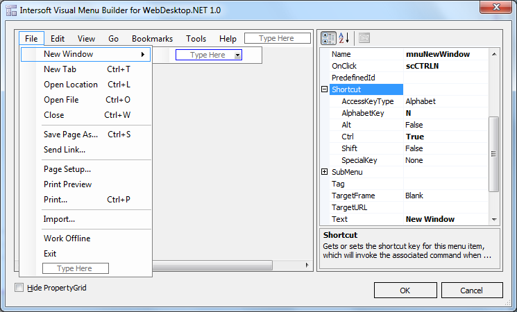 - In Shortcut, you can customize shortcut types. In this case, set AlphabetKey to N and Ctrl to True.