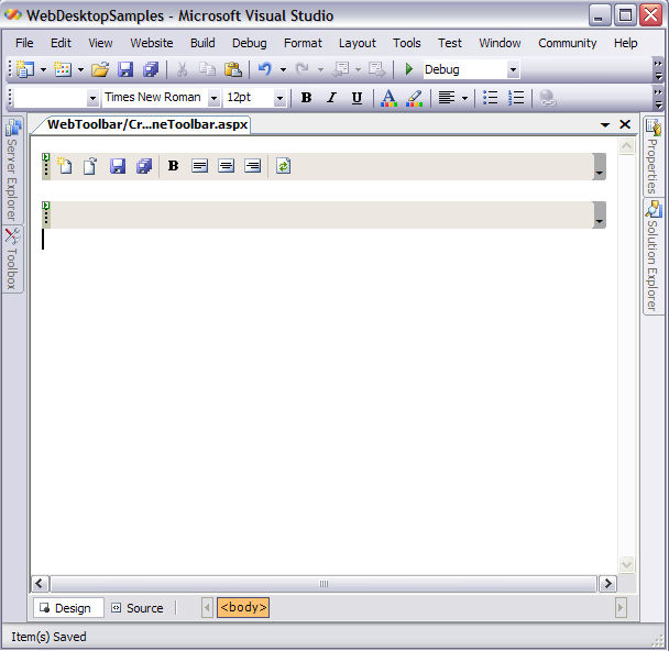 - Drag WebToolBar from Toolbox into a WebForm page.