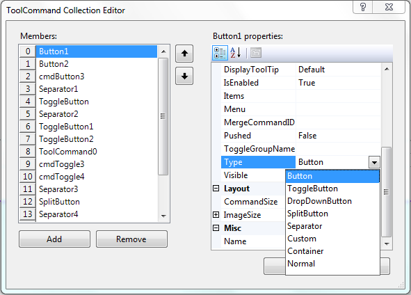 - To change the ToolCommand Types, set Type to any available ToolCommand types.