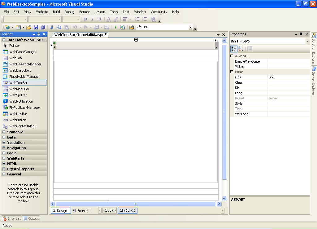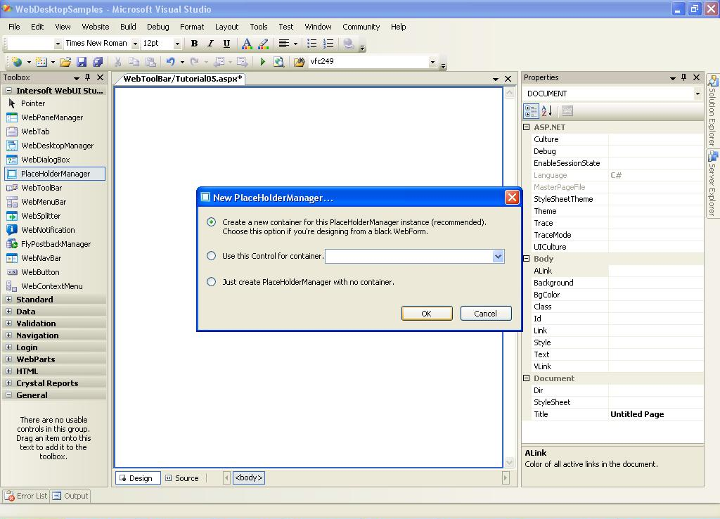 This will place the WebToolBar to Top Most Row in PlaceHolder manager, to learn how to change the docking position see "Changing Toolbar docking at design time" Tutorial.