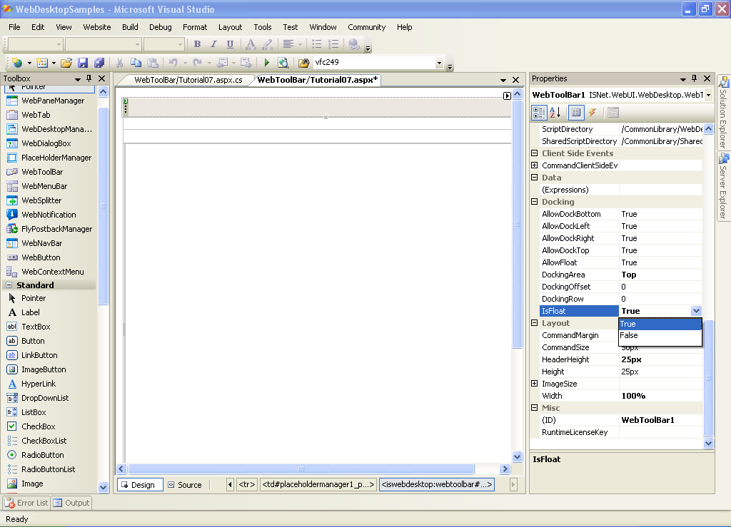 - Set isFloat's Property to True if you want the WebToolBar is on Floating Mode from the start.