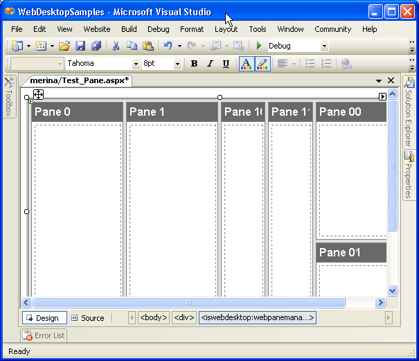 Creating complex layout is now simpler than ever. Knowing the limitations and complexity of layout relying solely on the tools provided in VS.NET, we decided to build an external designer solely to aid WebPaneManager users to design and layout conveniently.