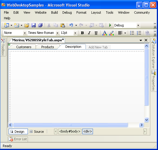 WebTab gives you a convenient way of applying different style for your WebTab's instance. Other than the Style that you make by your own, WebTab Designer will provide a few different predefined style. This tutorial will guide you how to change the style using Visual Studio 2005 Style Tab.