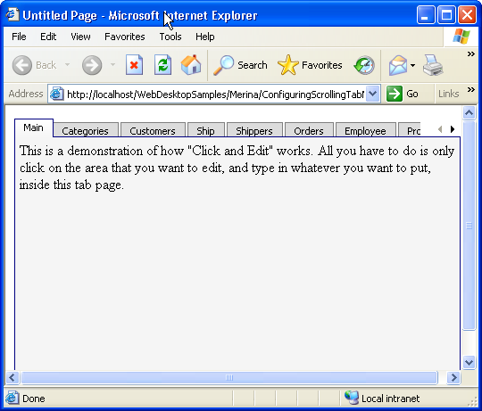 WebTab gives you an option whether the WebTab control should have a scroll button when the number of TabItem exceeds the controls' width. By default, the scroll button is not visible. This tutorial will guide you on how to configure the scrolling tab mode.