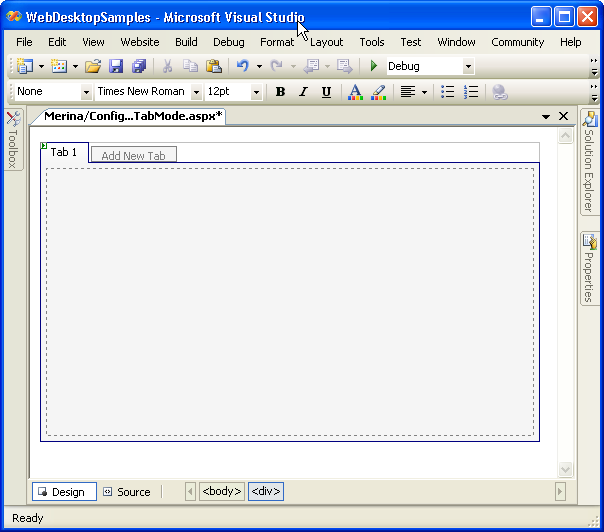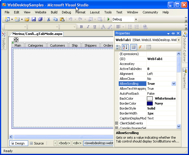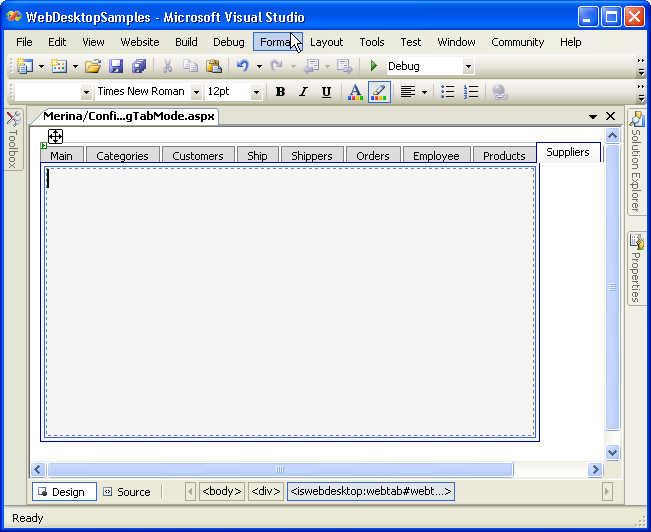 - Drag WebTab into a WebForm to create a new WebTab's instance.