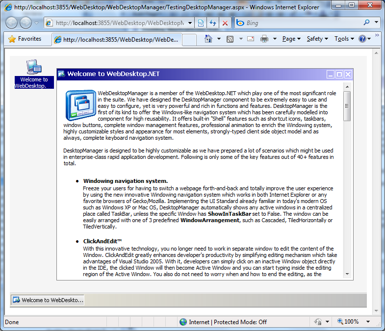 - Drag WebDesktopManager from Toolbox into a WebForm page.