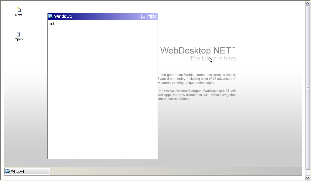 - Add some WebDesktopWindow, WebDesktopShortcut to WebDesktopManager1. In this example: one WebDekstopWindow and two WebDesktopShortcut are added to WebDesktopManager1.