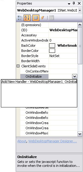- Drag WebDesktopManager control to the WebForm. Named the control as WebDesktopManager1.