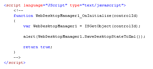 - To obtain the WebDesktopManager structure, you can use SaveDesktopStateToXml function. You can put this command in WebDesktopManager1_OnIntialize client side function that is just created.