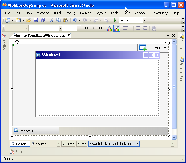- Drag WebDesktopManager into a WebForm.