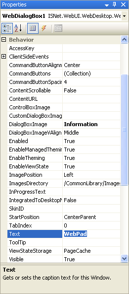- Specify the WebDialogBox Title by setting the Text property.