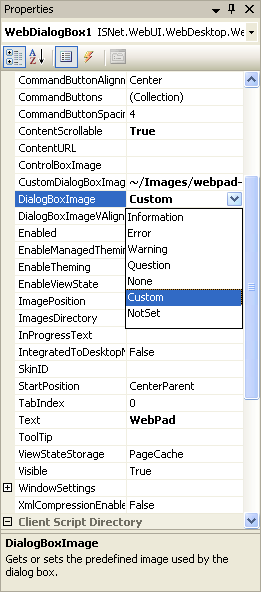 - Customize the Image on the left part of WebDiaogBox by setting the DialogBoxImage property to "Custom"