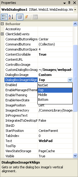Change the value of DialogBoxVAlign property to specify the vertical alignment of the DialogBoxImage.