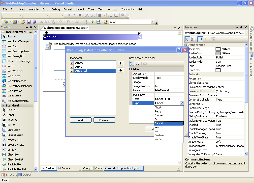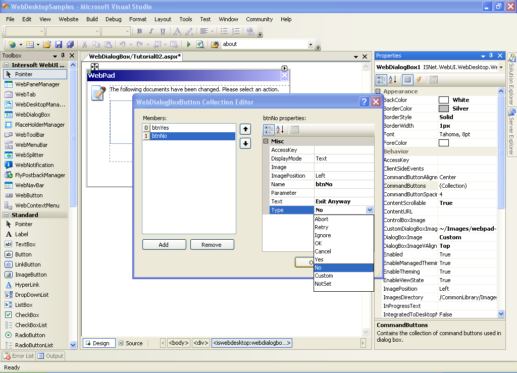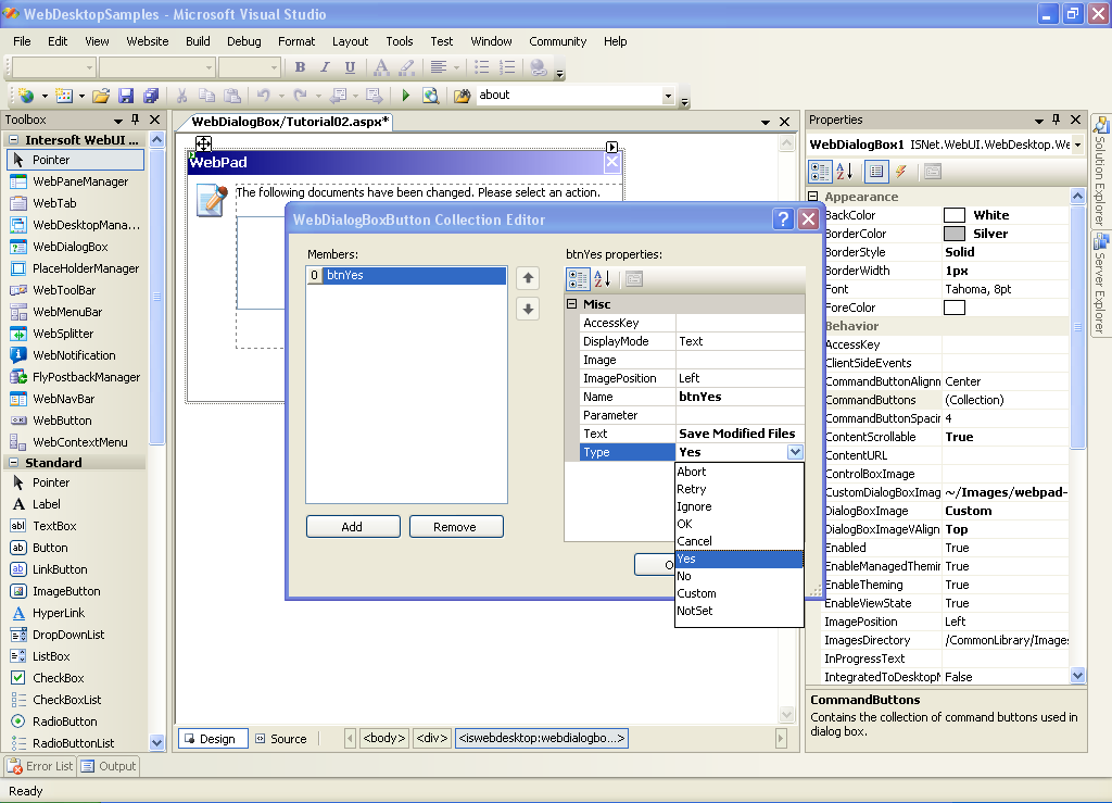 Add a WebDialogBox's Button of Type "Yes".