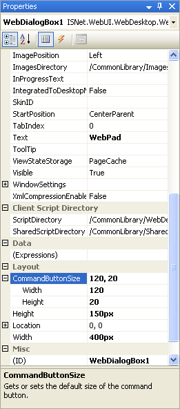 To specify the layout of the WebDialogBox's Button, you can set the following properties (Layout Properties):