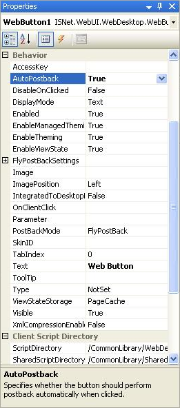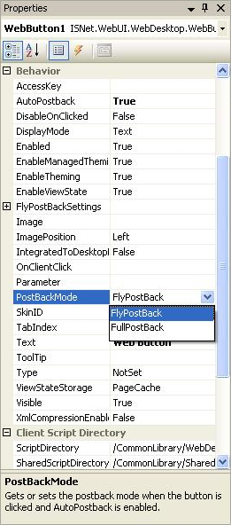 - In WebButton's Property, change PostBackMode Value to FlyPostBack