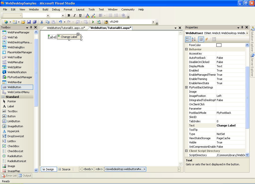 - In WebButton's Property, change AutoPostBack Property Value to True.