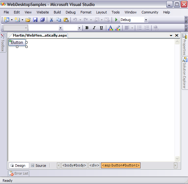 - Drag a Server Button from Toolbox into a WebForm page.