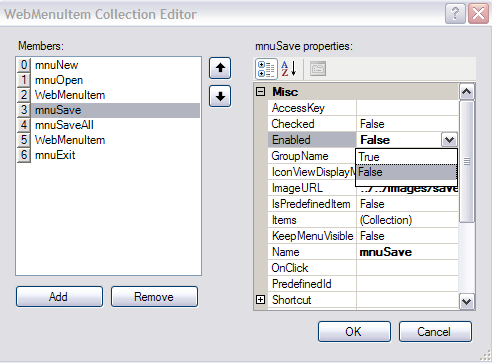 WebMenuBar1.Menus[0].Items.GetNamedItem("mnuSave").Enabled = true;