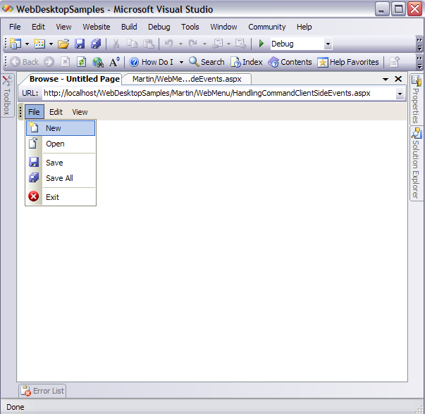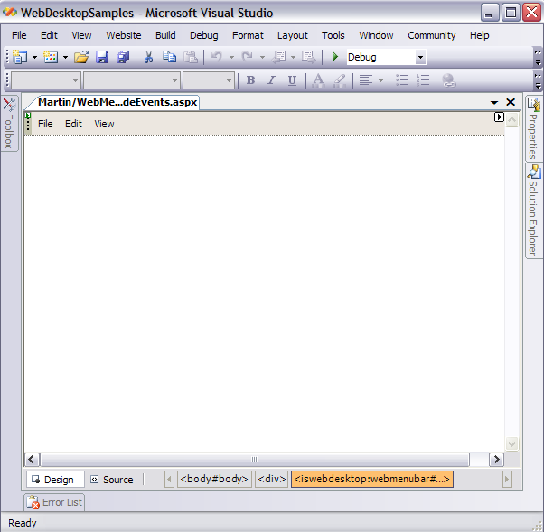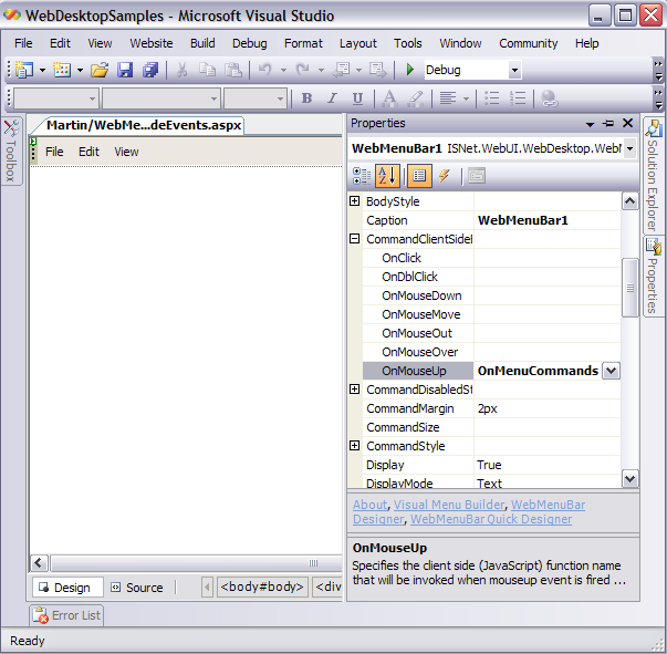 - Drag WebMenuBar from Toolbox into a WebForm page.
