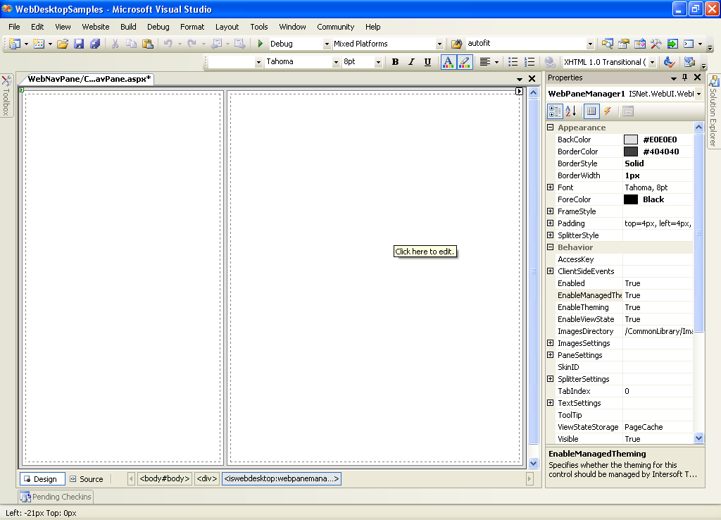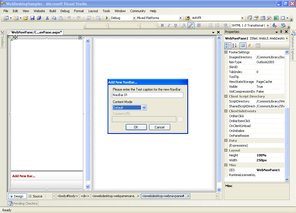 Create a simple WebNavPane which demonstrates WebNavPane behavior both at design time and run time.