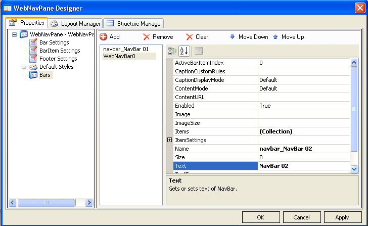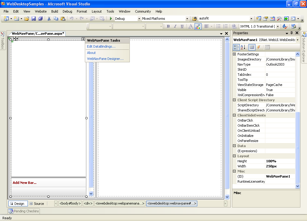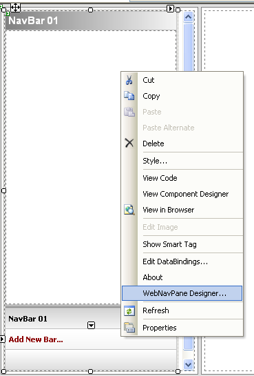 - Adding a new Bar can also use WebNavPane Designer. Right click the WebNavPane - WebNavPane Designer.