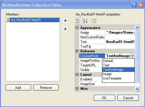- To apply Image to BarItem simply do same thing by fill Image Property with image URL and change the DisplayMode to TextAndImage or Image.