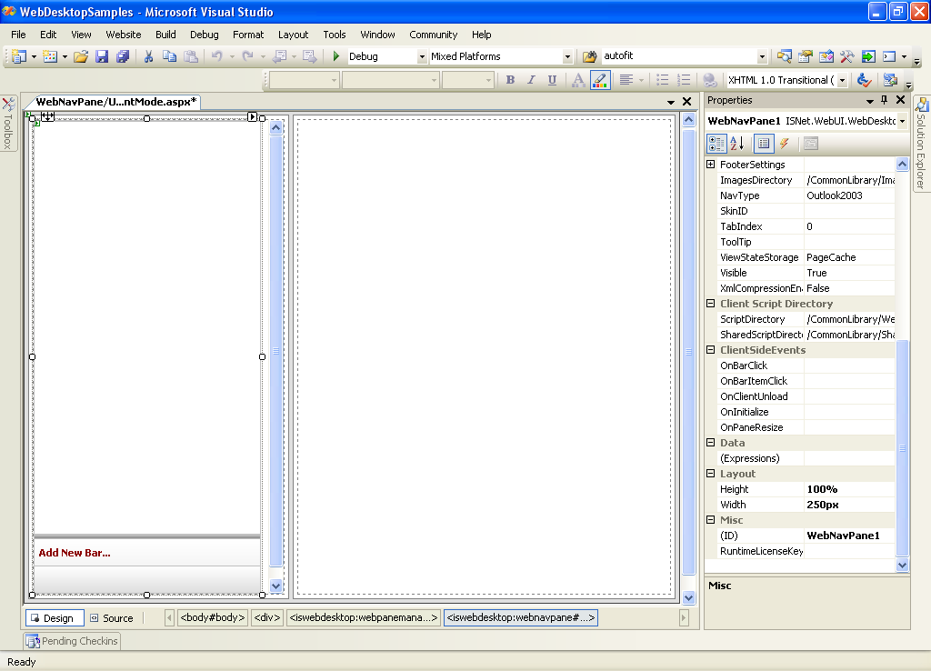 - Right click the WebNavPane - WebNavPane Designer to open WebnavPane Designer.