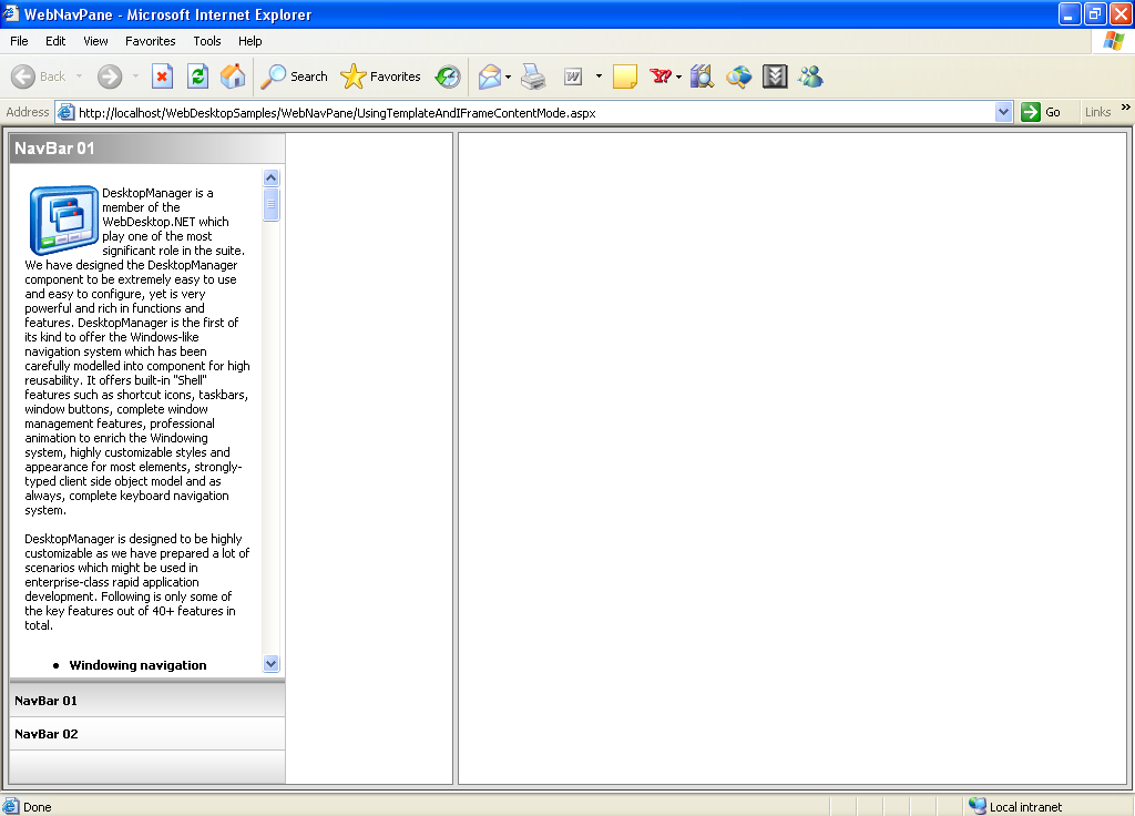 IFrame or Template Content can be used to give some flexibility of WebNavPane contents.