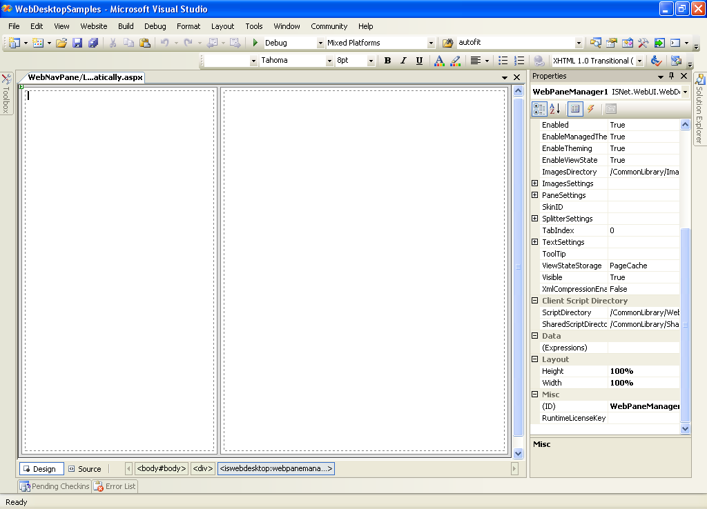 - Create a WebPaneManager as shown in the picture bellow (you can see tutorial how to do it in WebPaneManager Tutorials).