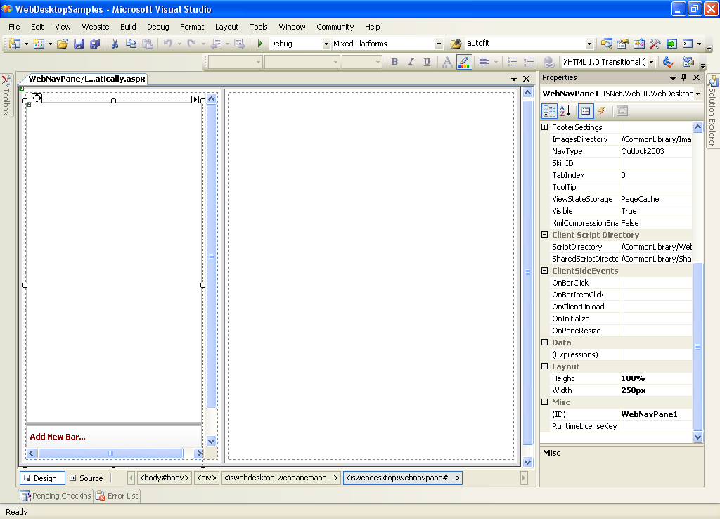 ISNet.WebUI.WebDesktop.WebNavBar navBar = new ISNet.WebUI.WebDesktop.WebNavBar();// initialize navBarItem